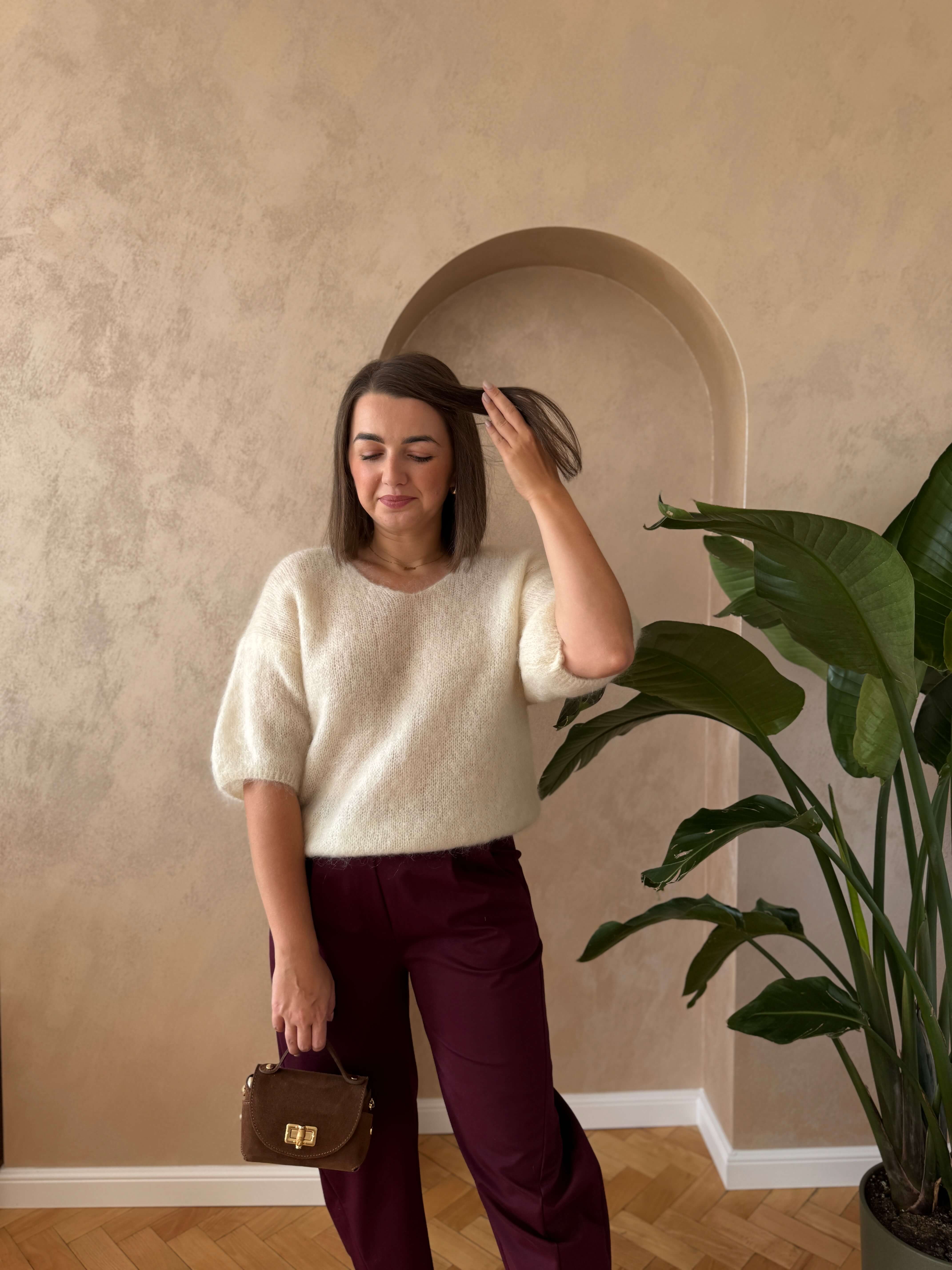 Sweter na krótki rękaw kid moher śmietankowy