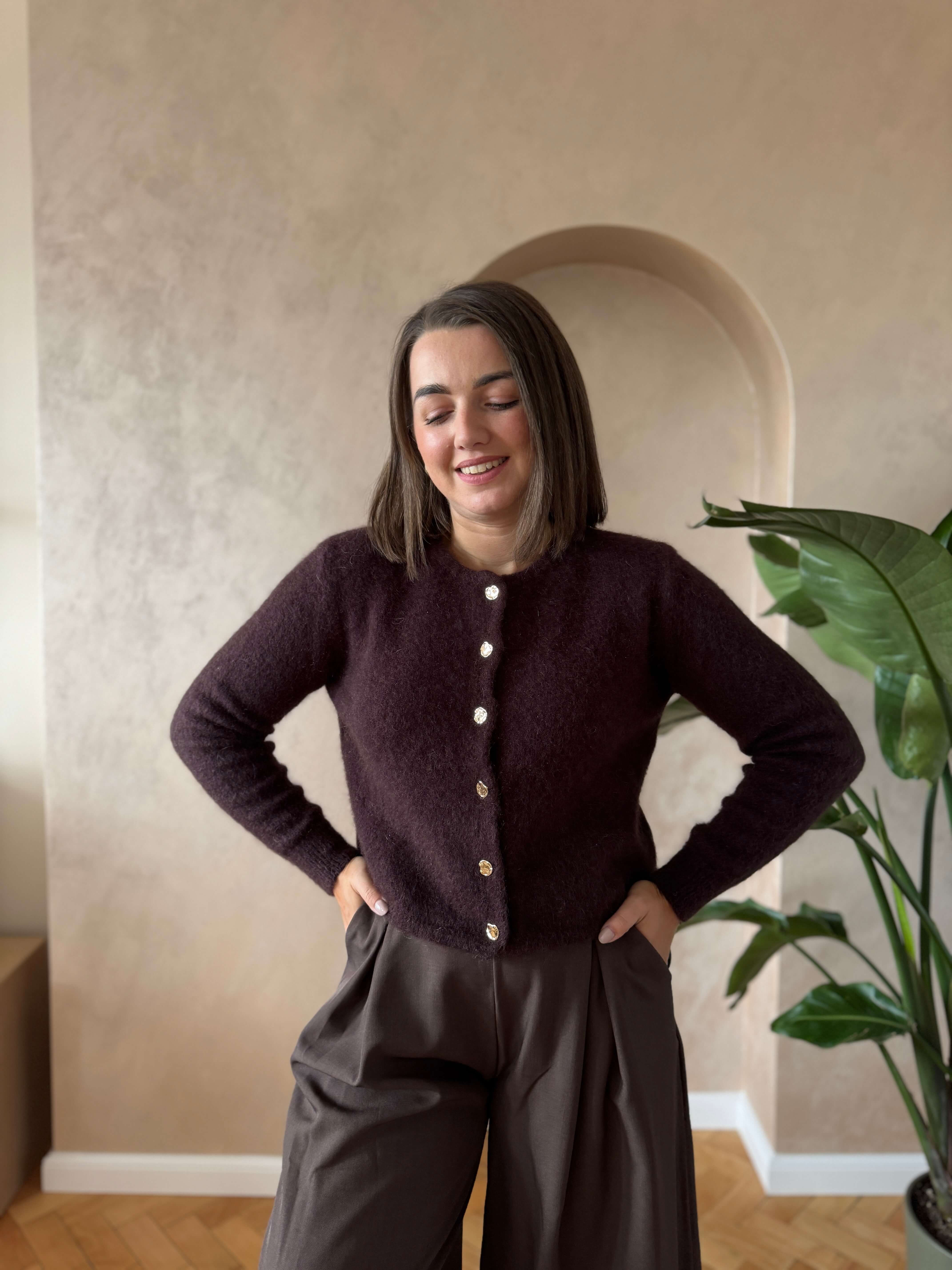 Kardigan kod moher ze złotymi guziczkami