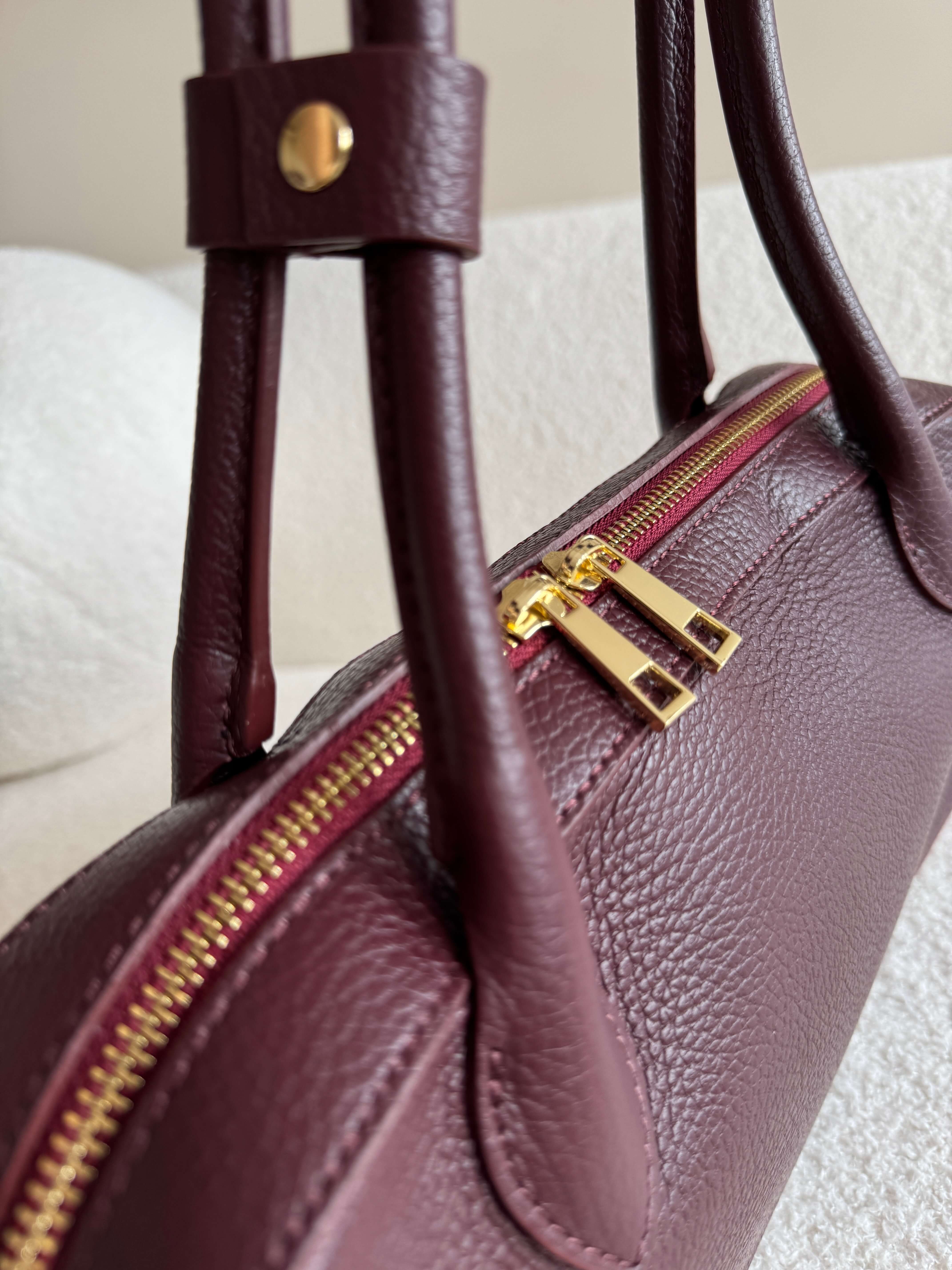 Bordowa skórzana torebka typu bagietka