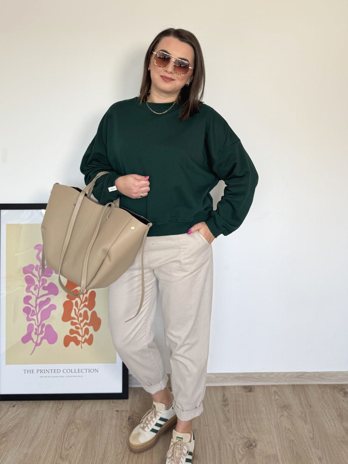 Luźniejszy krój sprawia, że spodnie dobrze układają się na sylwetce i dają swobodę ruchu. Neutralny kolor beżu sprawia, że łatwo dopasować je do wielu stylizacji – świetnie wyglądają zarówno z t-shirtem i sneakersami, jak i z koszulą czy lekkim swetrem.
