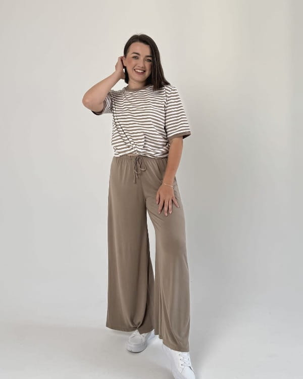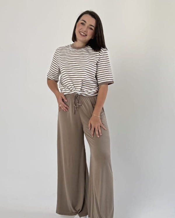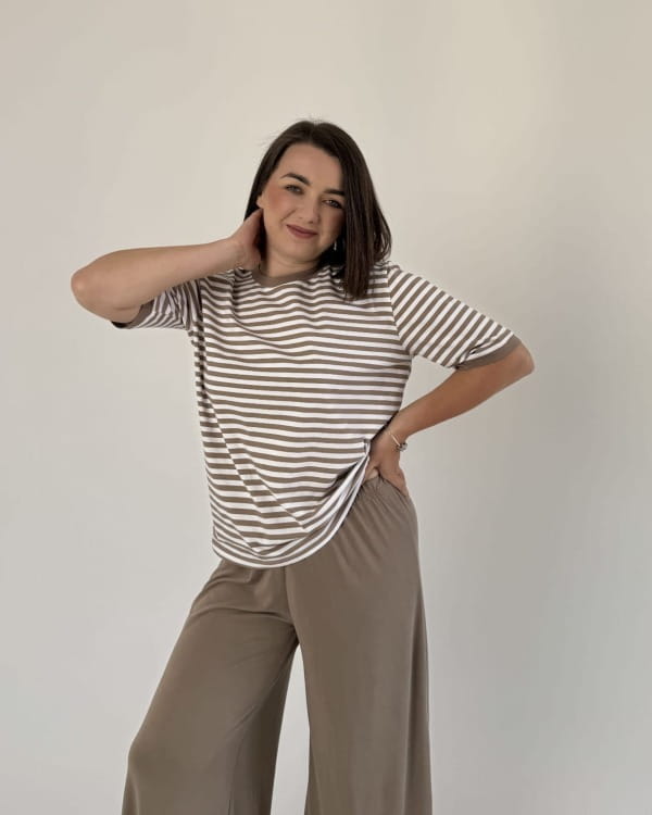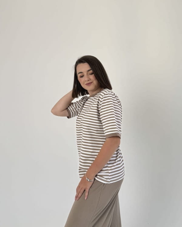 Bawełniany t-shirt w beżowe paski