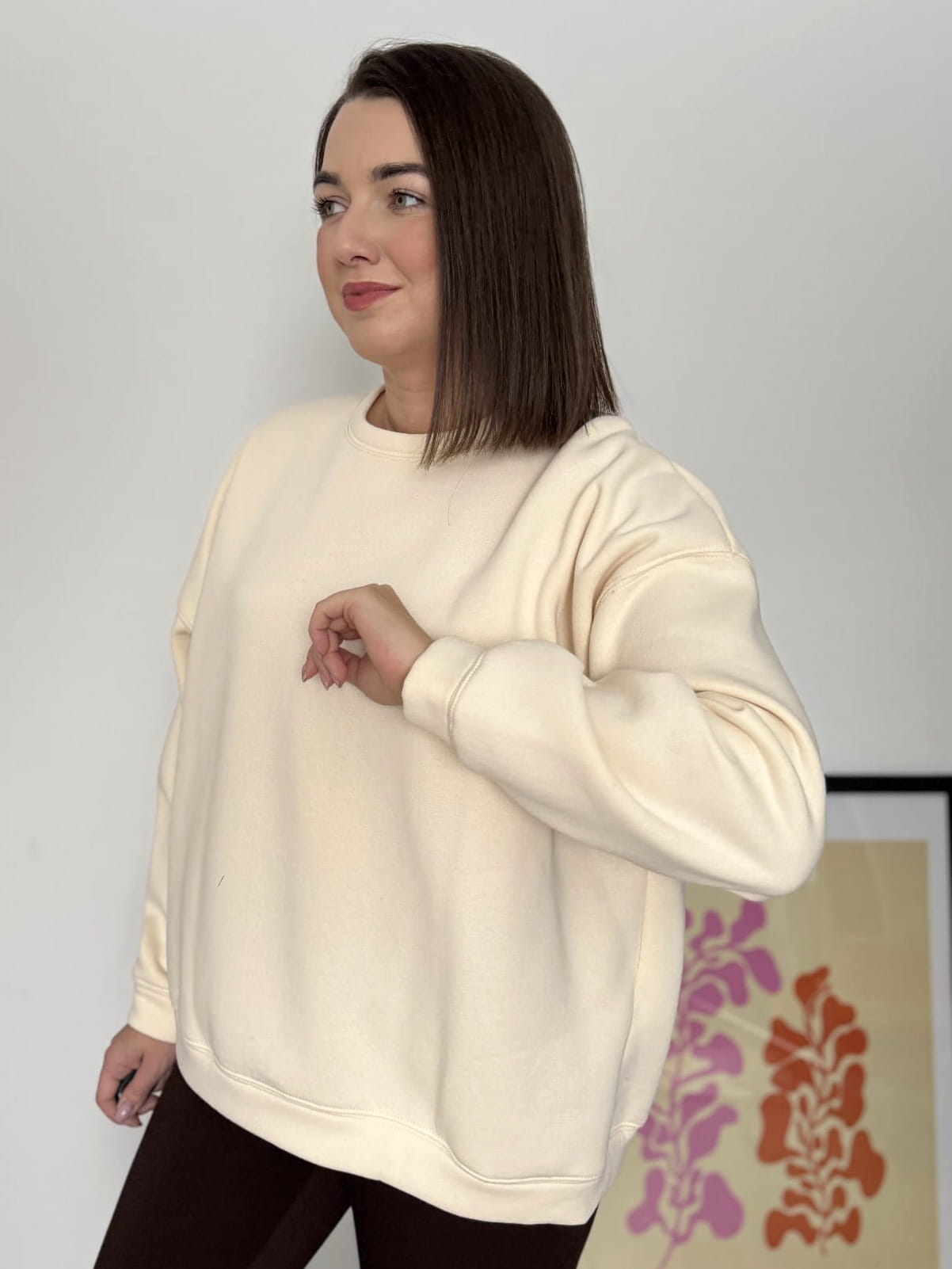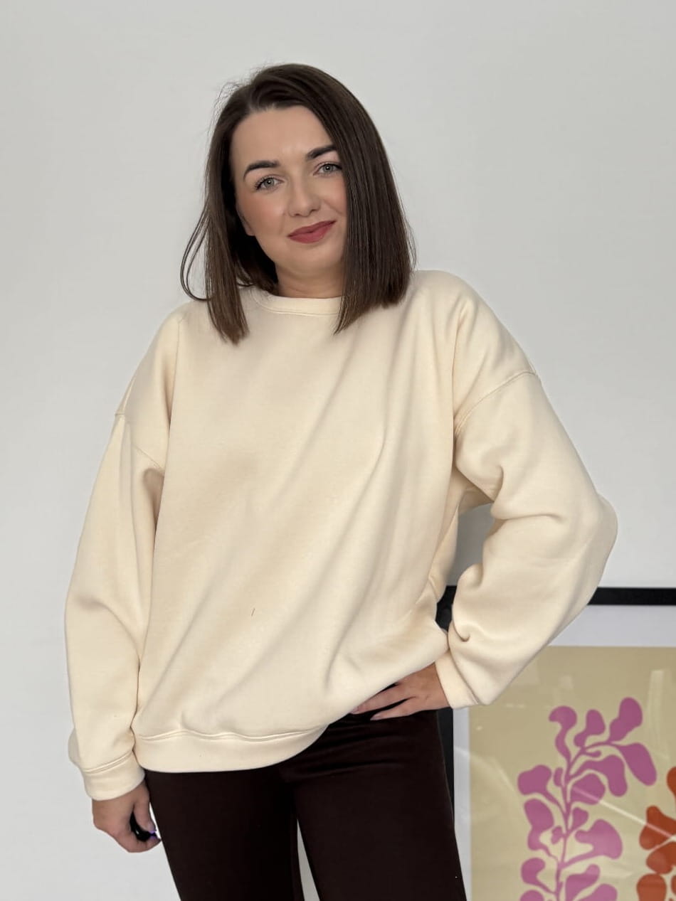 Bluza oversize z odpinanym kwiatem śmietanka