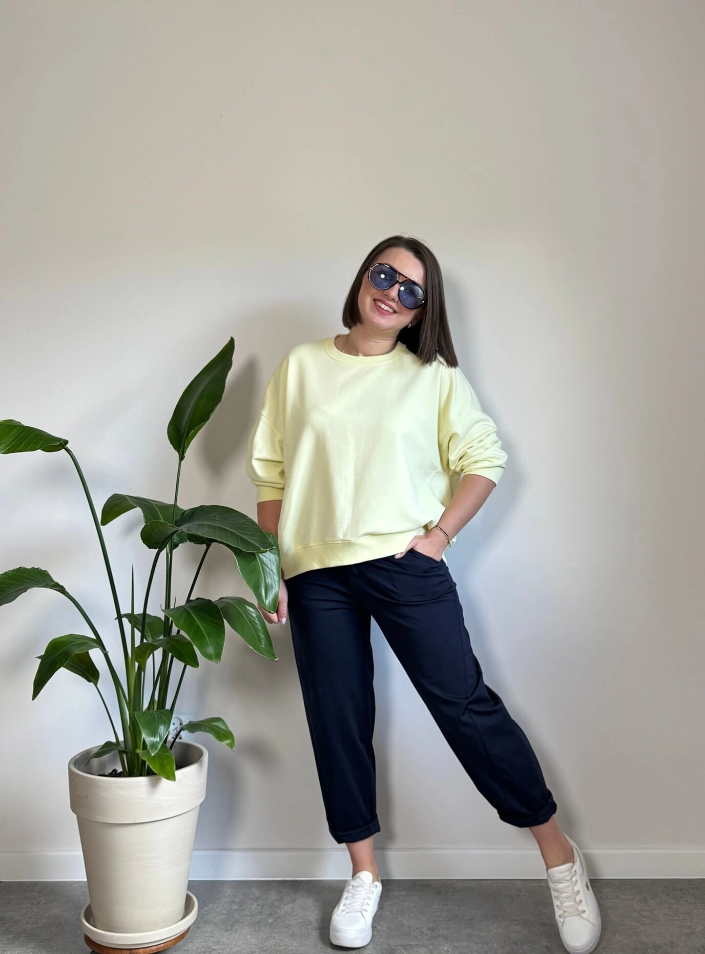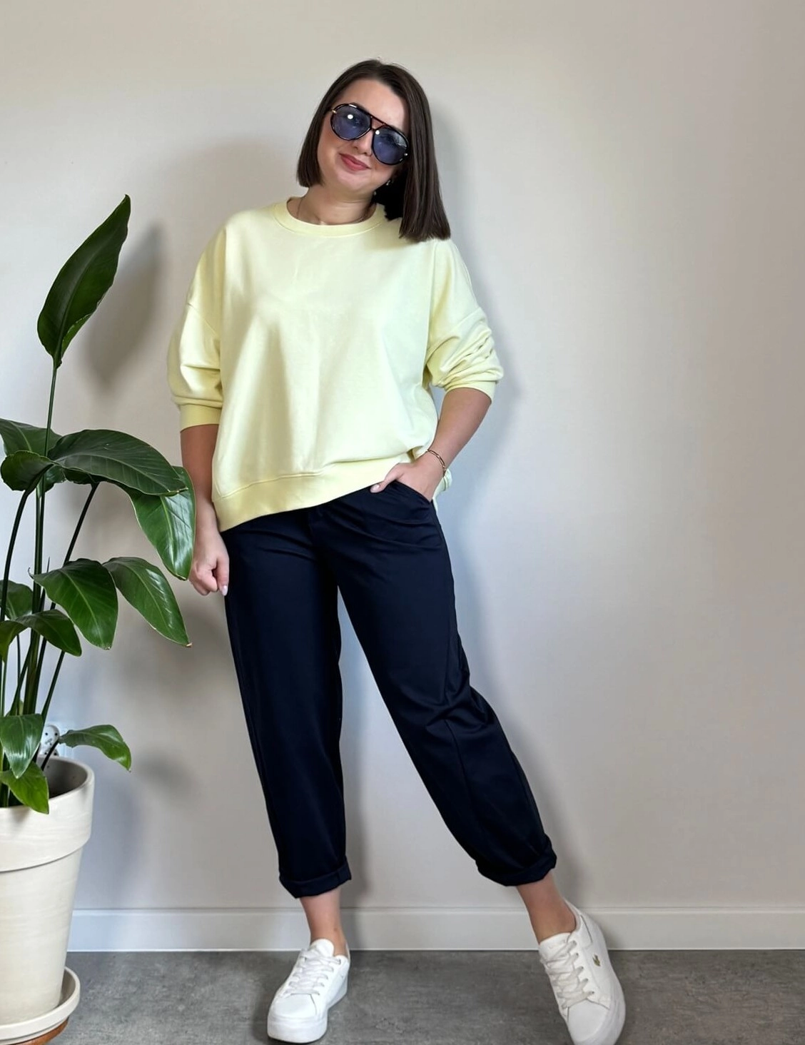Spodnie o kroju balloon, które pięknie układają się na sylwetce i dają pełną swobodę ruchów. Luźniejsze na biodrach i udach, delikatnie zwężane ku dołowi – tworzą modny, ale nadal bardzo kobiecy efekt.
