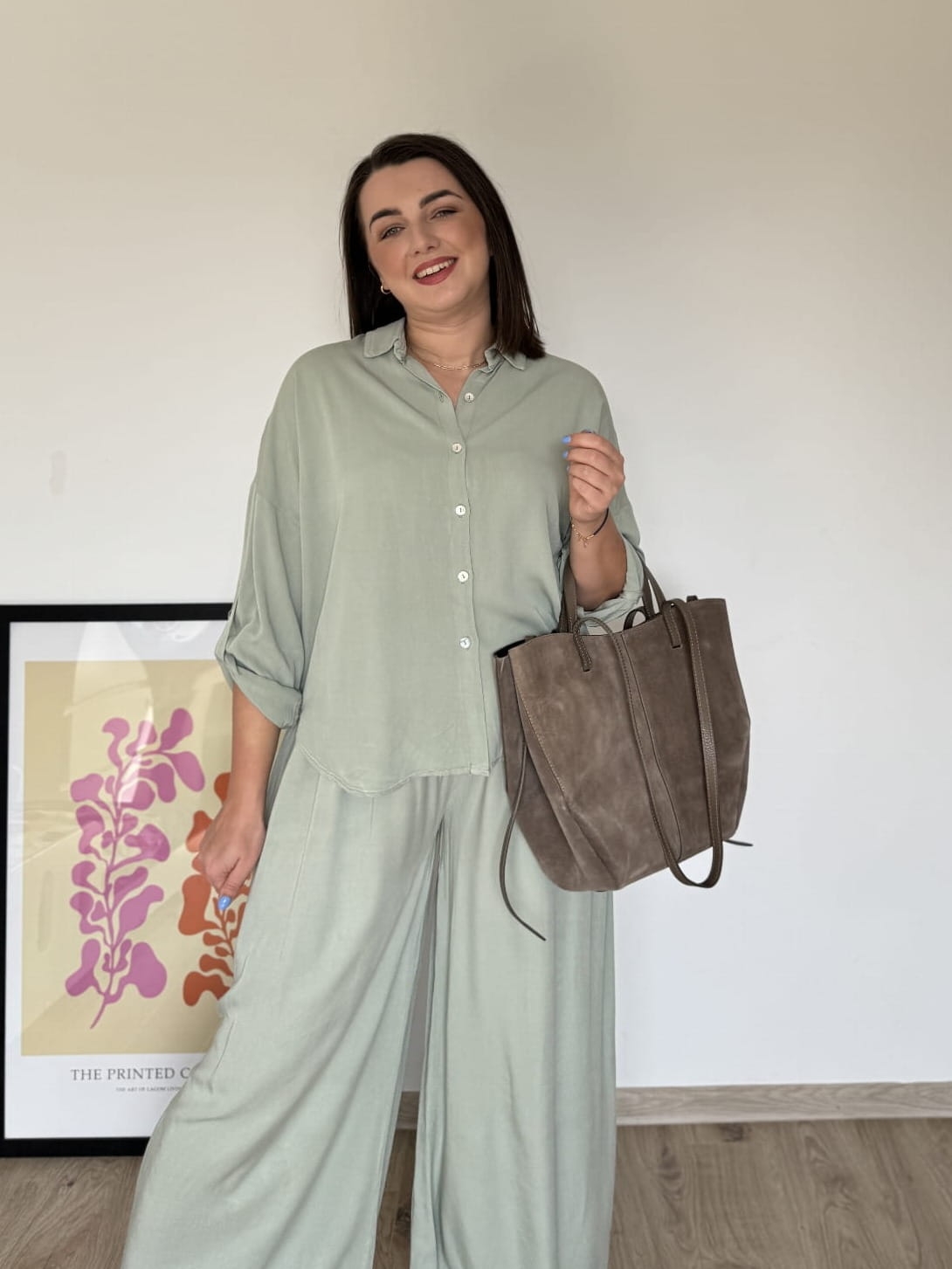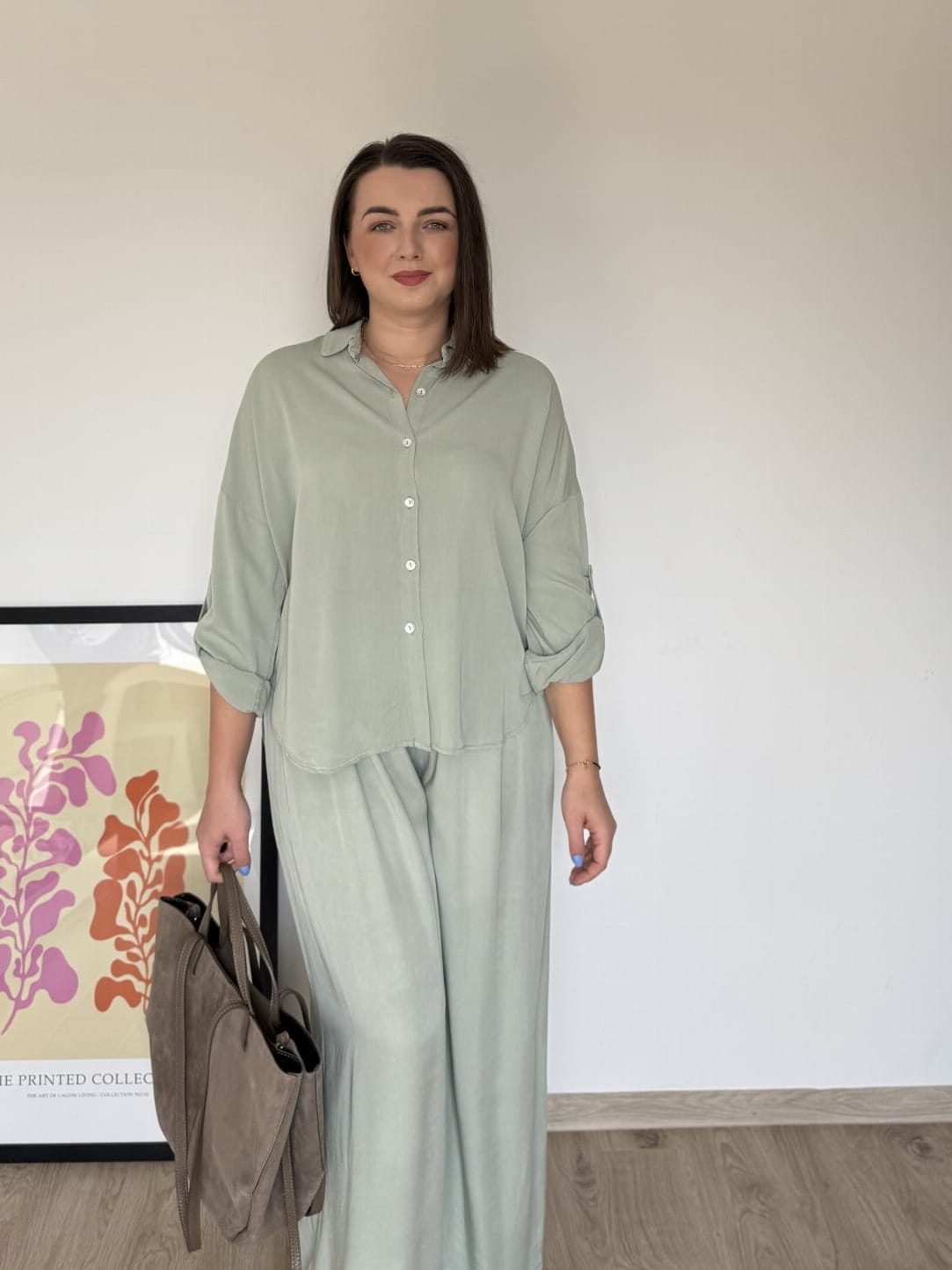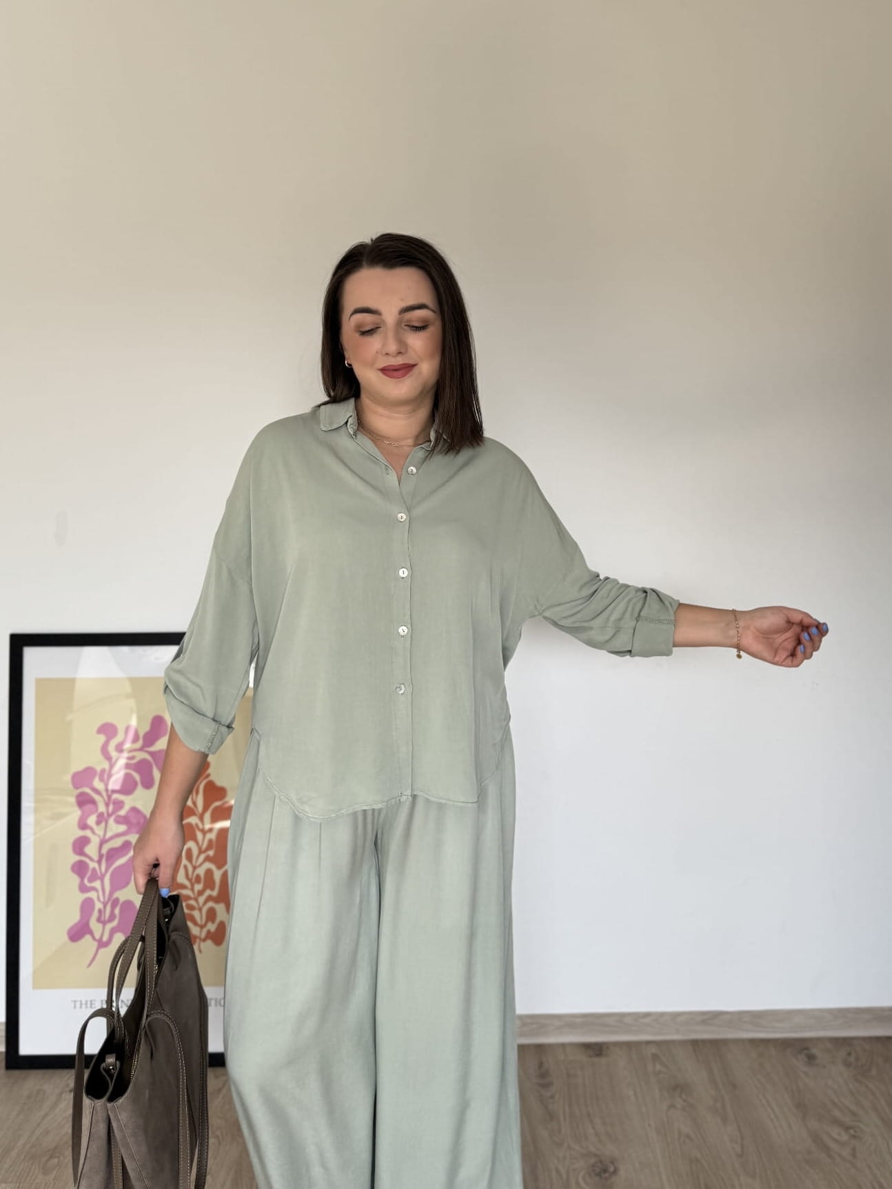Komplet wiskoza lyocel koszula + spodnie | szałwia