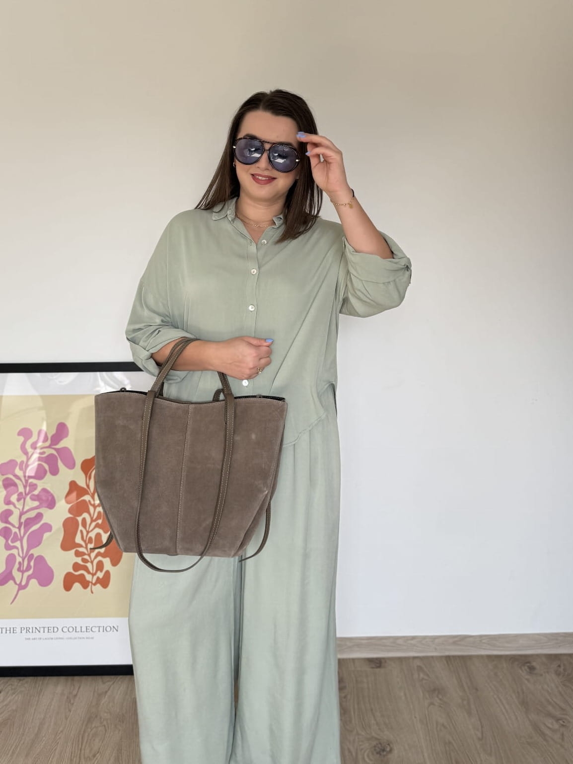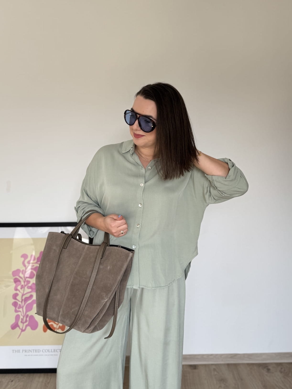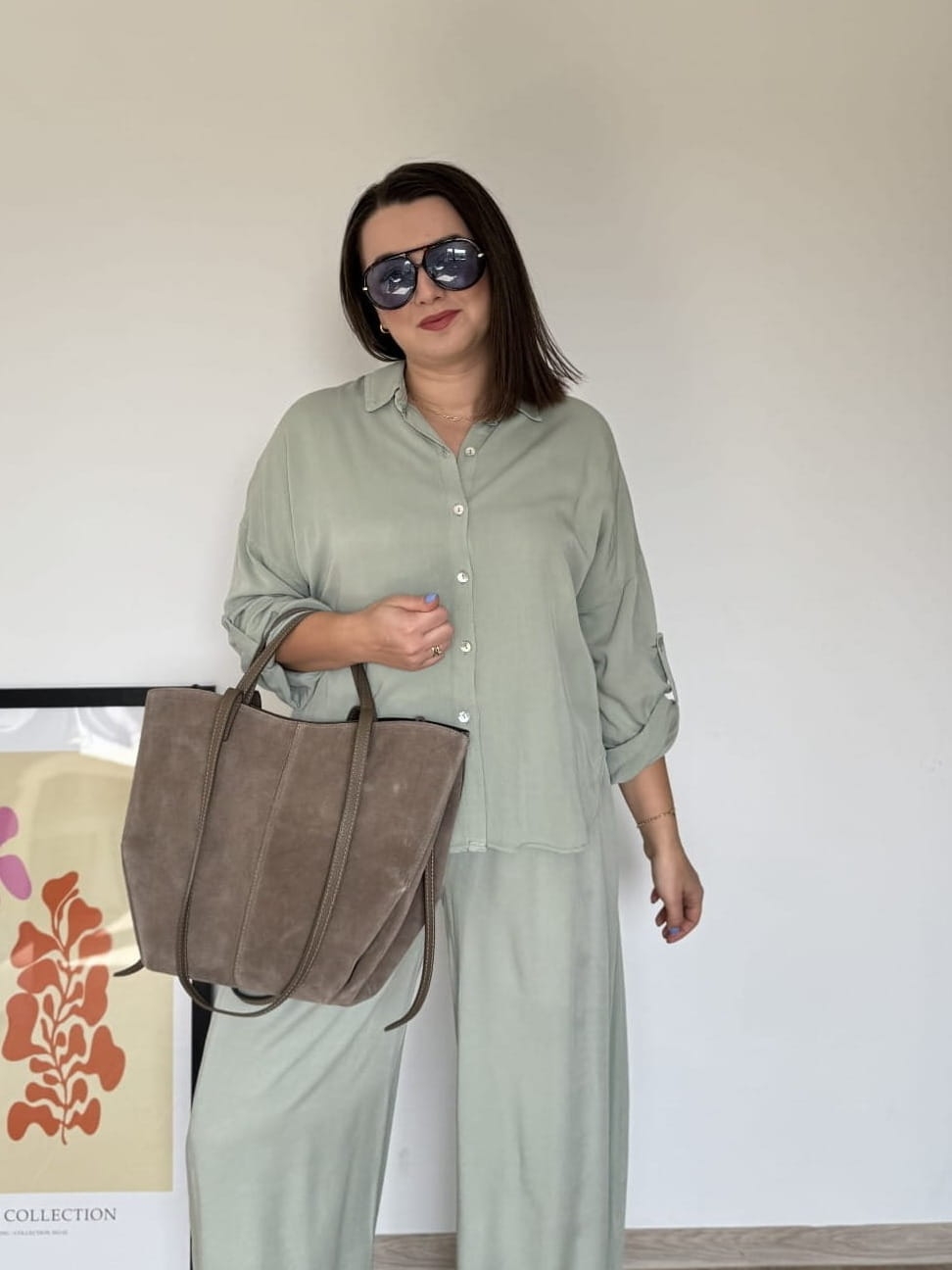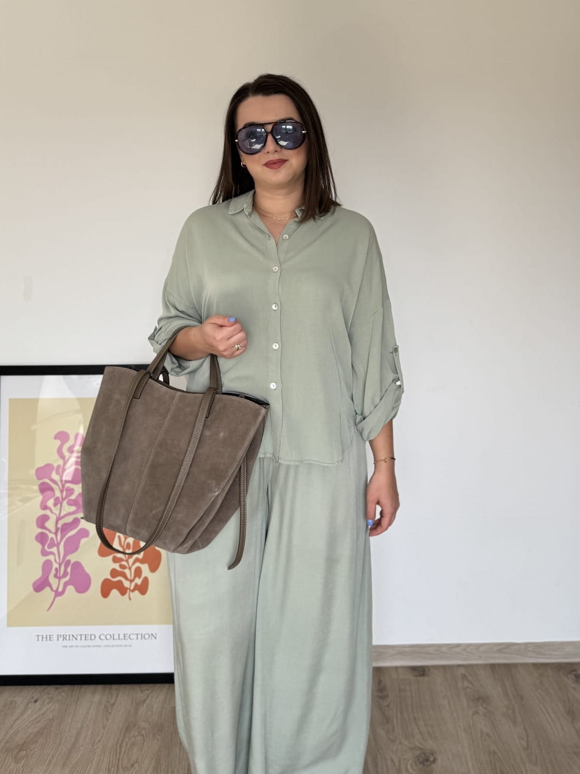 Komplet wiskoza lyocel koszula + spodnie | szałwia