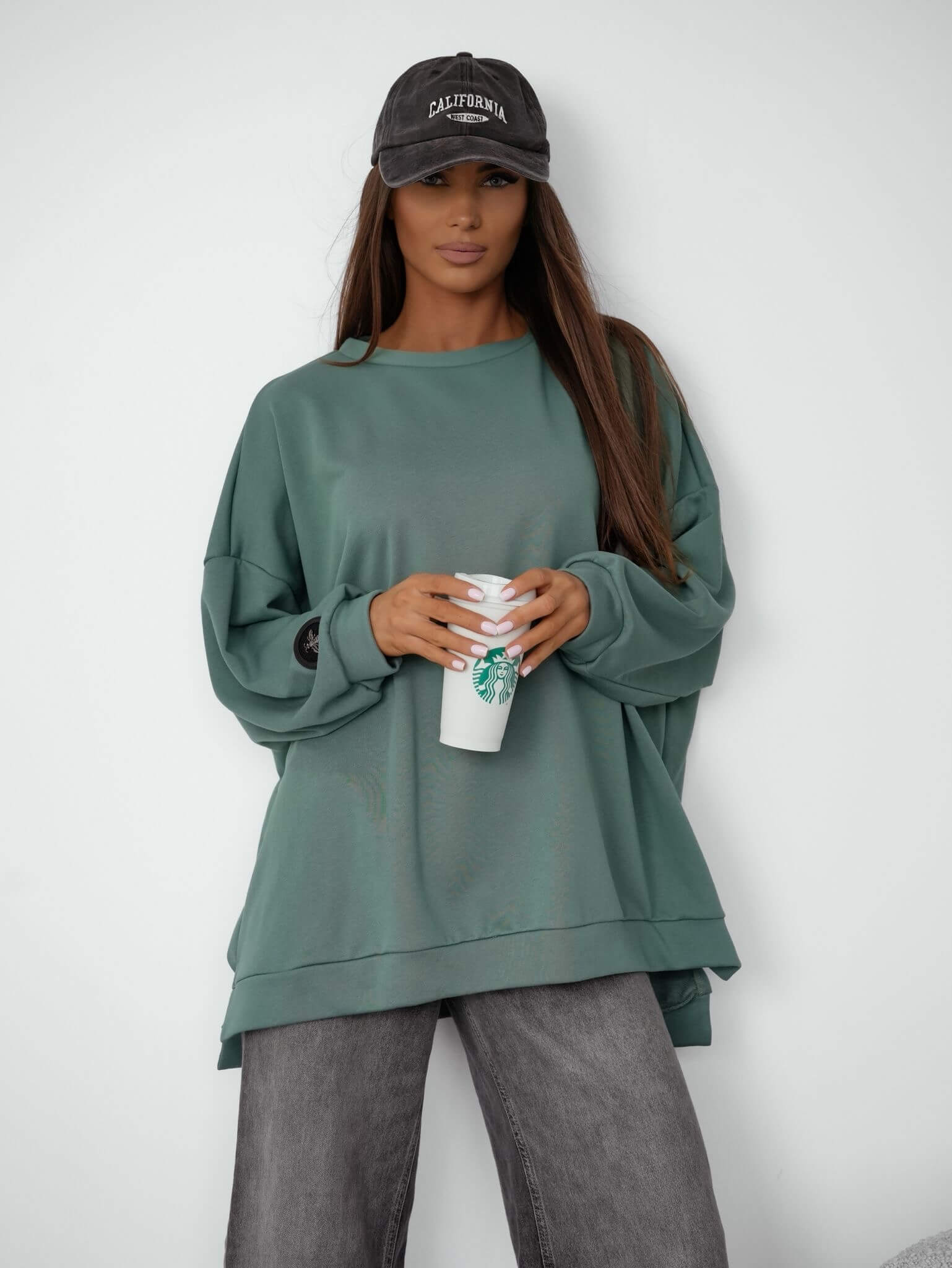 Oversizowa bawełniana bluza damska mucha | zieleń