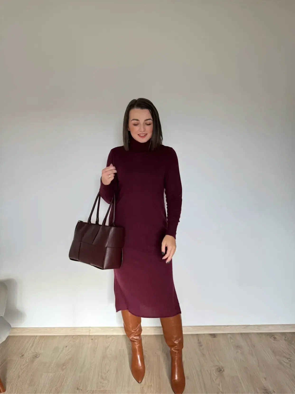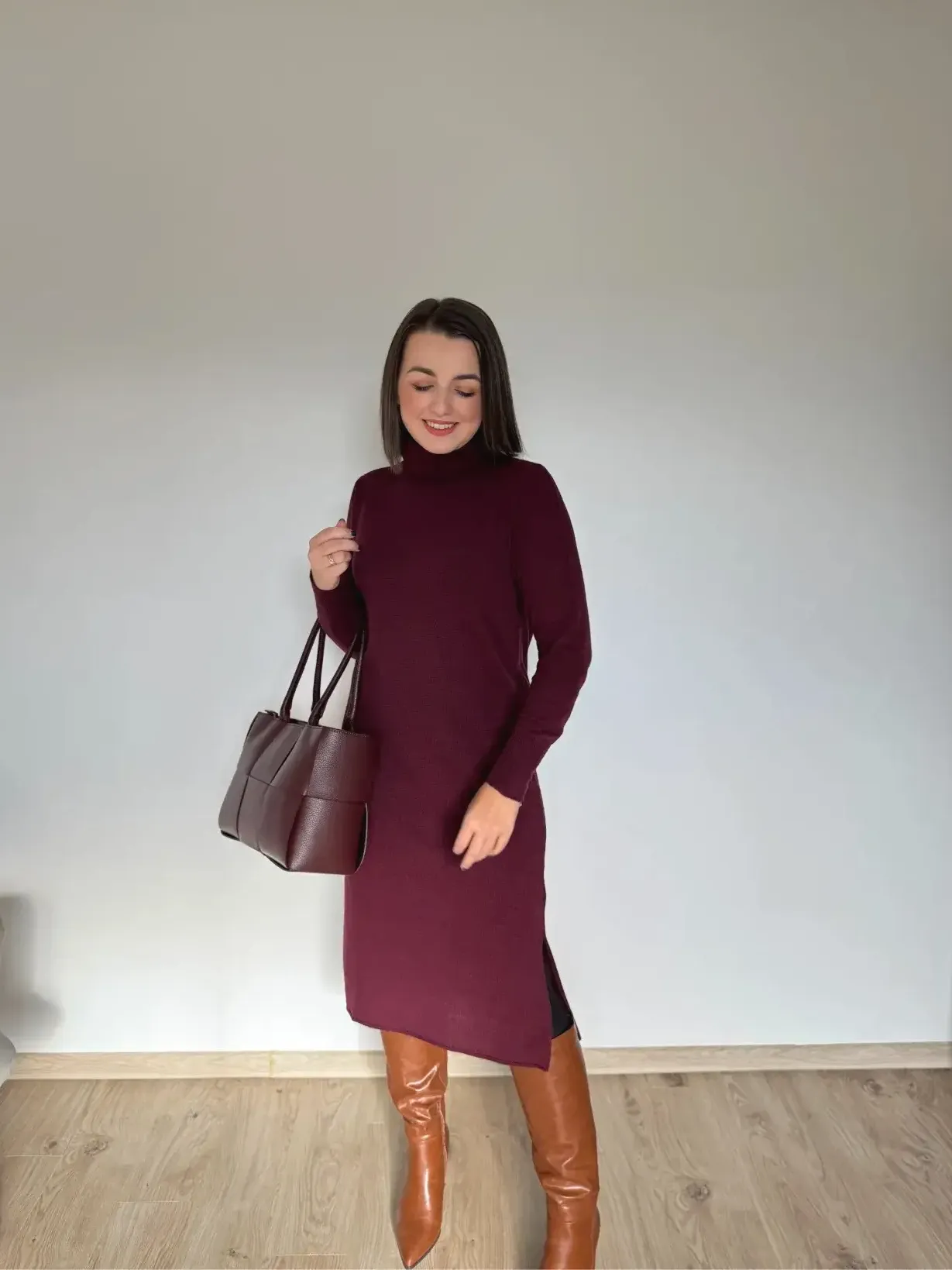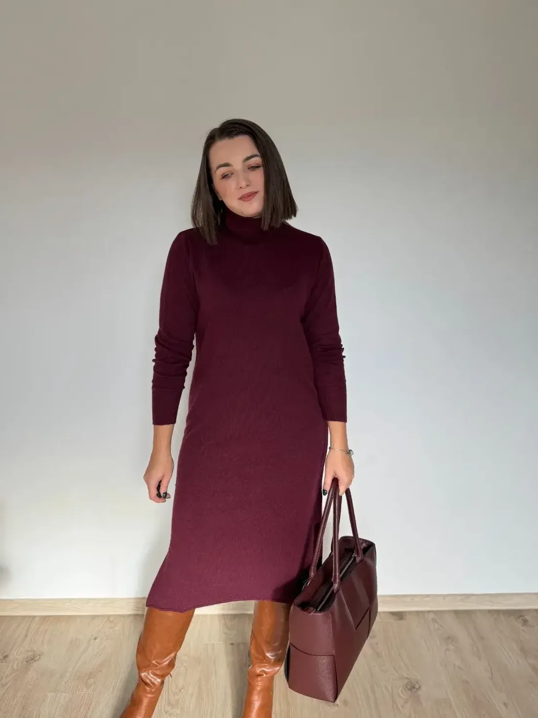 Sukienka midi z golfem z domieszką kaszmiru | burgund