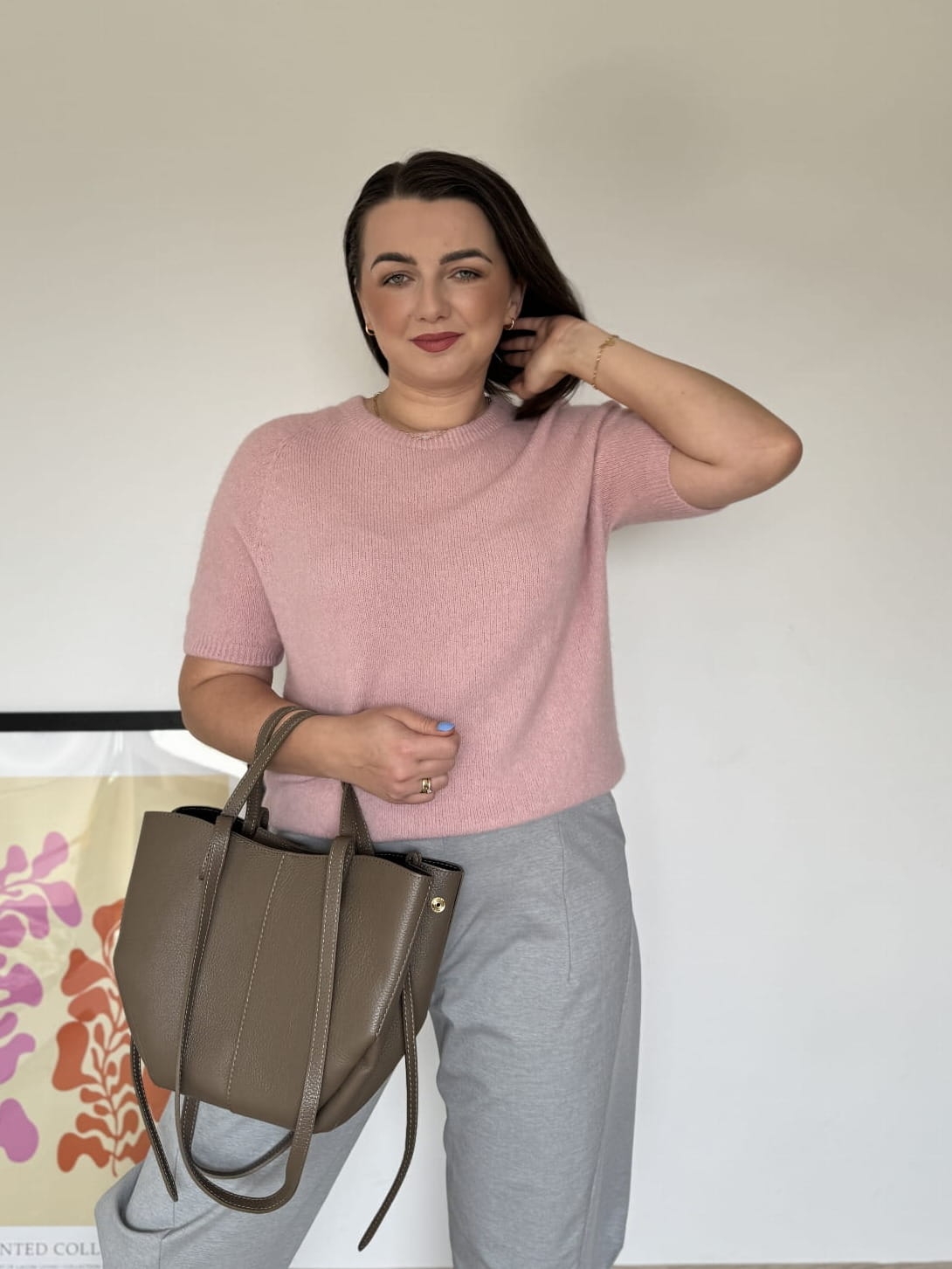 Sweter na krótki rękaw baby alpaca | pudrowy róż
