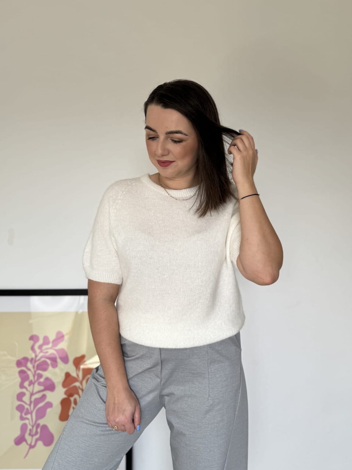 Sweter na krótki rękaw baby alpaca | śmietanka